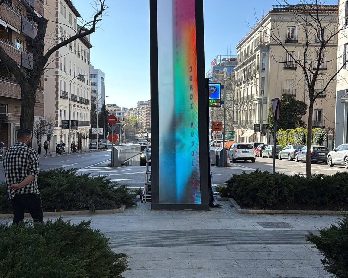 Alfa Arte is proud to have contributed to the metalwork fabrication and construction of Vértice, a monumental sculpture by Daniel Canogar installed on Juan Bravo Street in Madrid, in front of the headquarters of the Madrid Press Association (APM). Commissioned by the City of Madrid, the work pays tribute to the 15 Spanish journalists killed in the exercise of their profession since the advent of democracy.