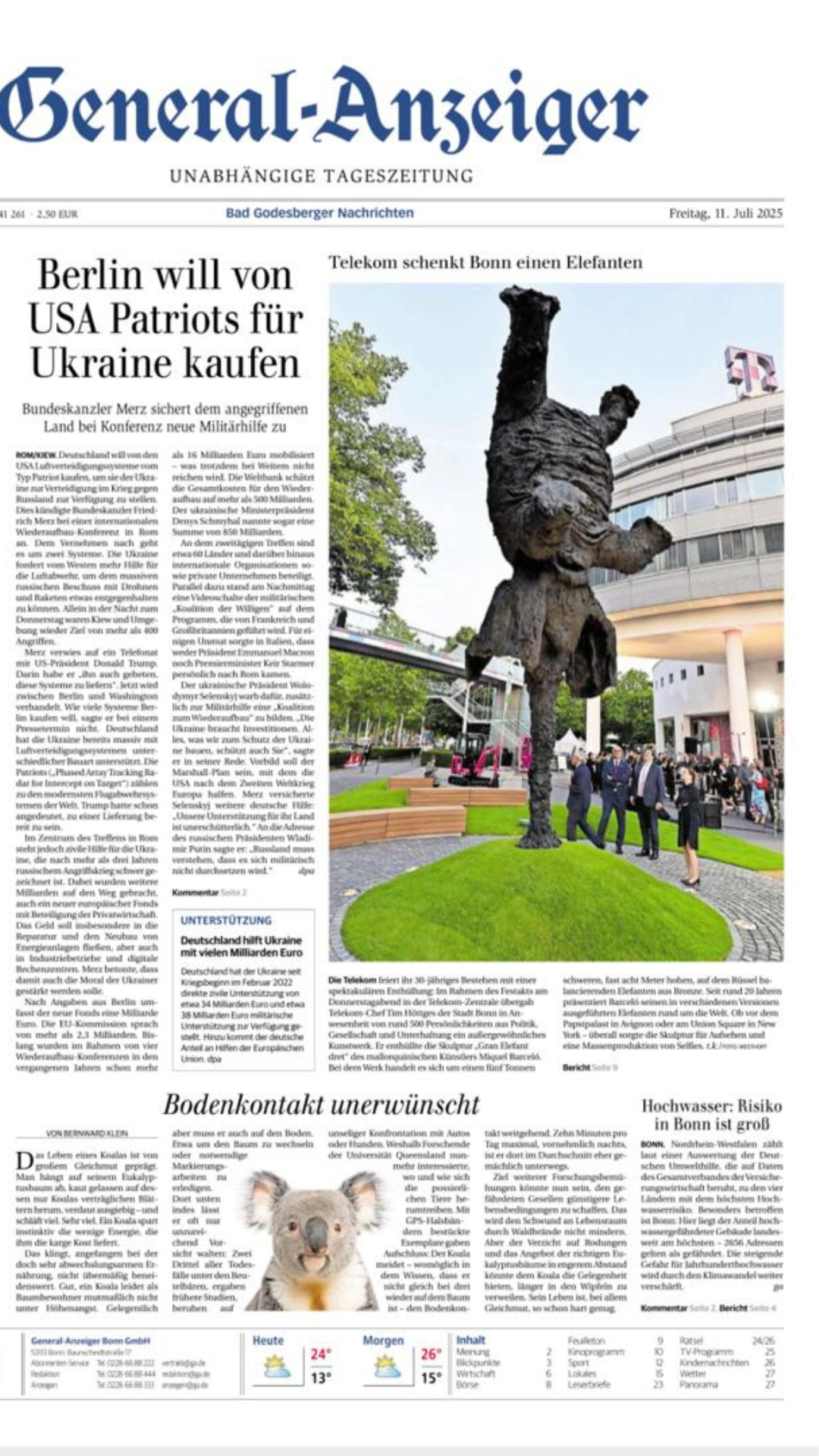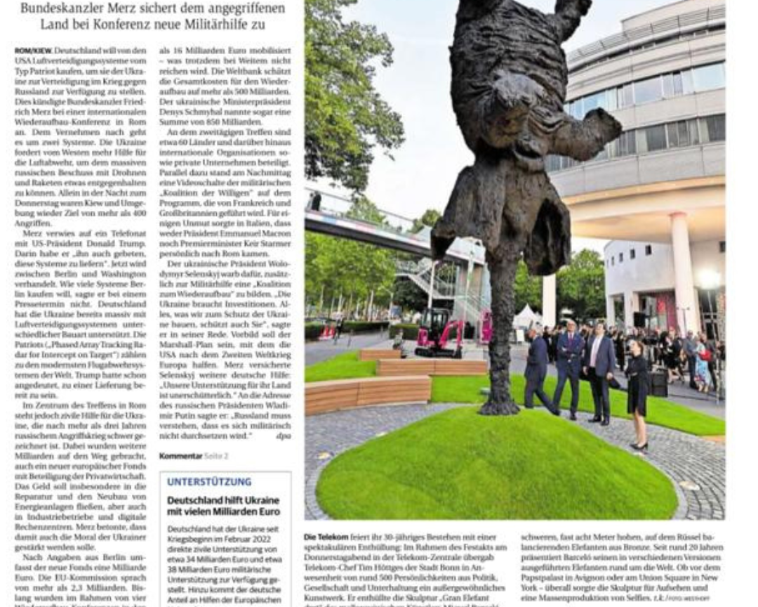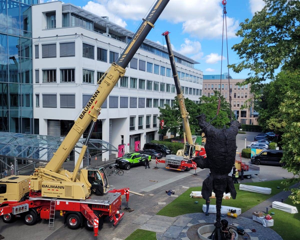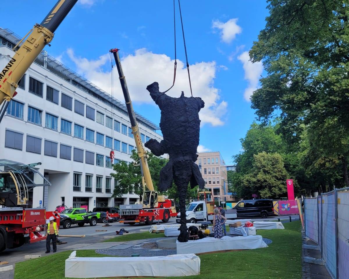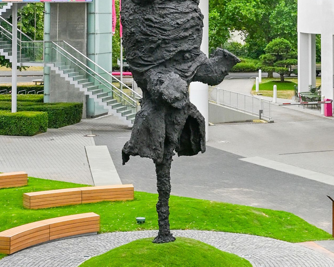 Spanish artist Miquel Barceló’s monumental sculpture Gran Elefant dret—a towering bronze elephant balancing elegantly on its trunk—now graces the entrance to Deutsche Telekom’s headquarters in Bonn. Standing at approximately eight meters tall, this expressive work conveys the idea that even the impossible can become possible.